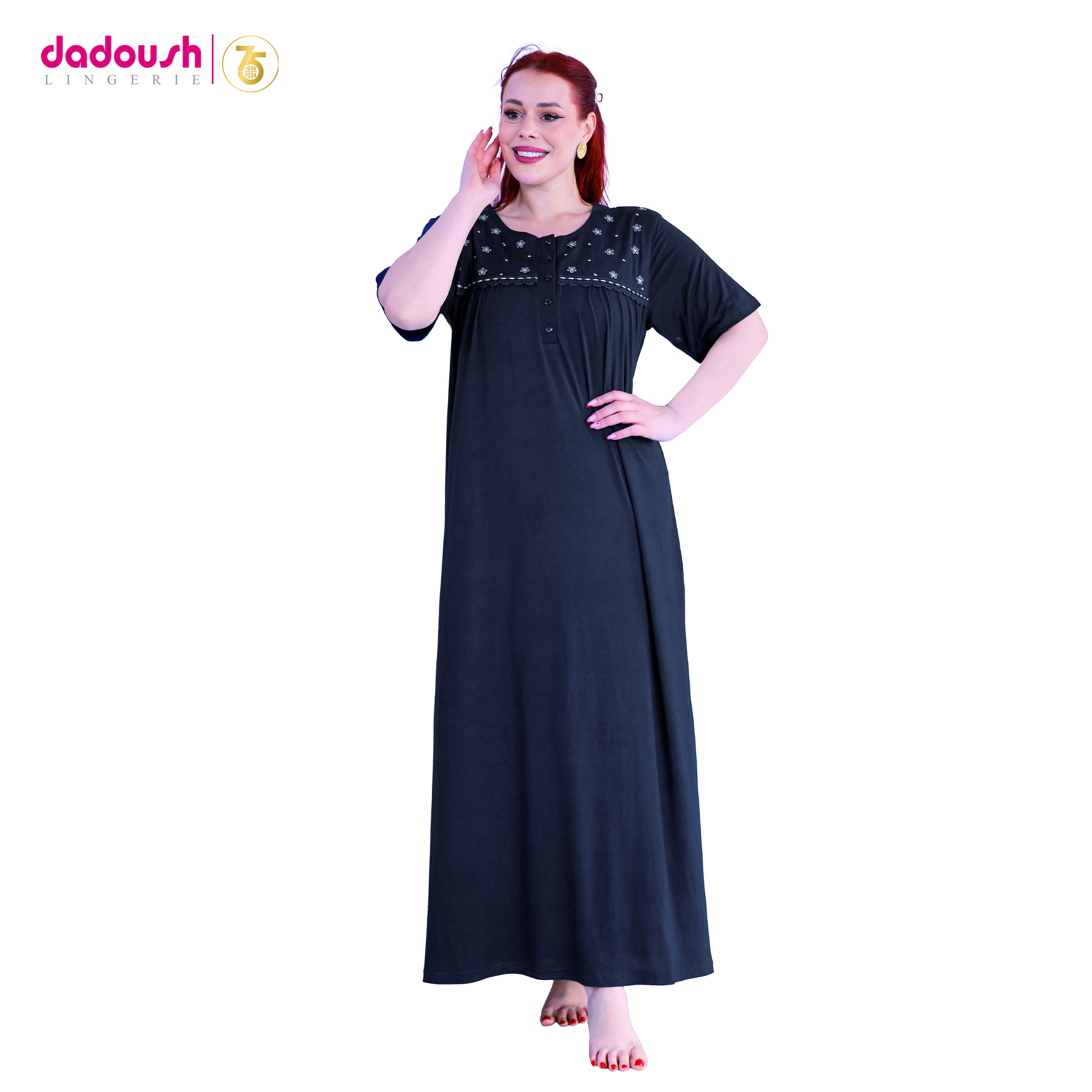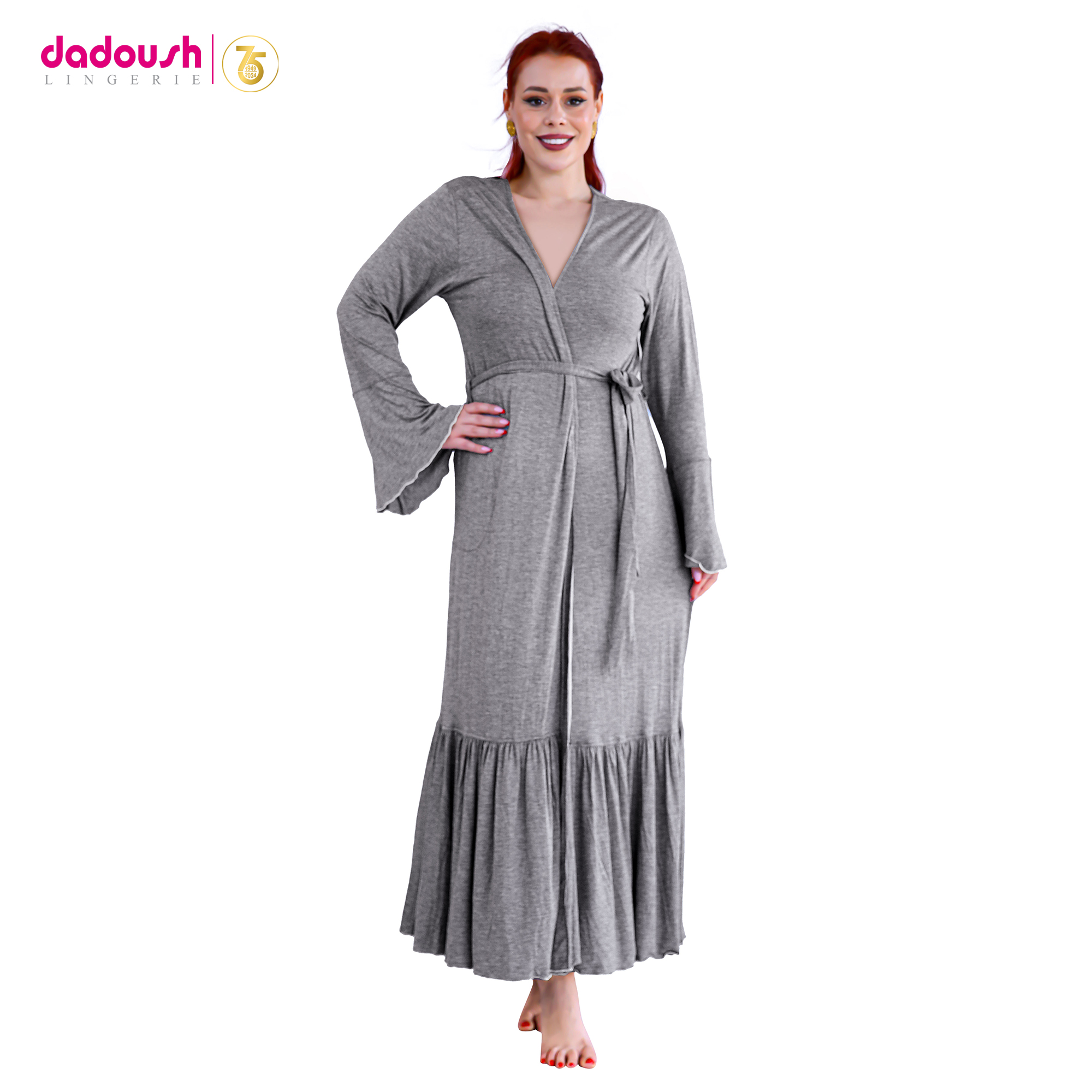 روب باكمام قصيرة مميز مع إضافة الدانتيل الناعم على الأطراف وحزام انيق ليظهر الخصر بشكل جميل.